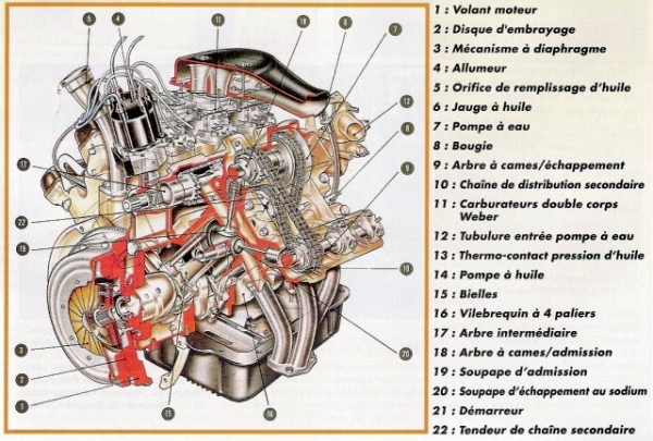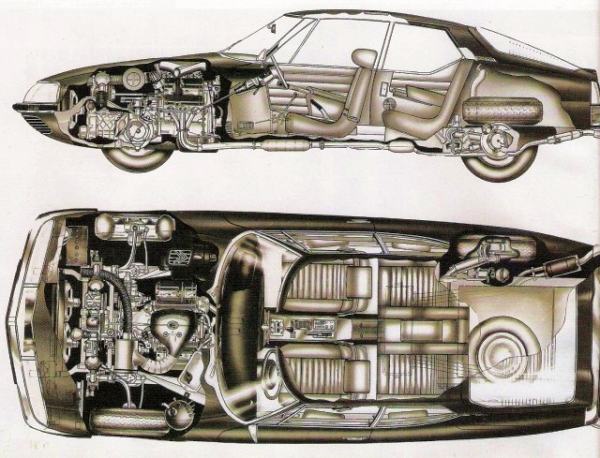 - Iskutilavuus 2670 cc (lokakuusta ’73 alkaen 2965 cc, Maserati C114-1130) - Sylinterimitat: 87 x 75 mm (91,6 x 75 mm) - Puristussuhde 9:1 (98 oktaaninen bensa) - Neljä sylinterinkansien yläpuolista, ketjuvetoista nokka-akselia - Kannet ja lohko alumiinia, vaihdettavat sylinteriputket - Alumiininen öljynjäähdytin - Kolme Weber 42DCNF-kaksoiskaasutinta tai elektroninen Bosch D-Jetronic polttoaineen ruiskutus (syyskuusta '73 lähtien) Sähköinen Bendix polttoainepumppu |